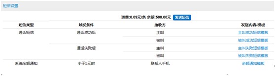 一、短信内容有规定模板: 1、发提示,带认证码,回复后可发起呼叫: (代理商名称)提示,您在2014-12-3 10:15:50有电话未能接到,回复1018,系统自动帮您接通该客户。 2、发提示,带认证码与主叫电话,回复后可发起呼叫: (代理商名称)提示,您在年-月-日 几点几分几秒有电话未能接到,来电号码是********,回复****,系统自动帮您接通该客户。 3、发提示,并附带号码: (代理商名称)提示,您在年-月-日 几点几分几秒 有电话未能接到,来电号码是********。 4、发提示,不附带号码: (代理商名称)提示,您在年-月-日 几点几分几秒 有电话未能接到 2分钟之内收到短信,回复验证码后2分钟内发起呼叫。 备注:主叫是总机转分机的只能回复到总机上。 备注: 红色字体的是可以更改的地方。 二、短信内容,模板可以自定义: |